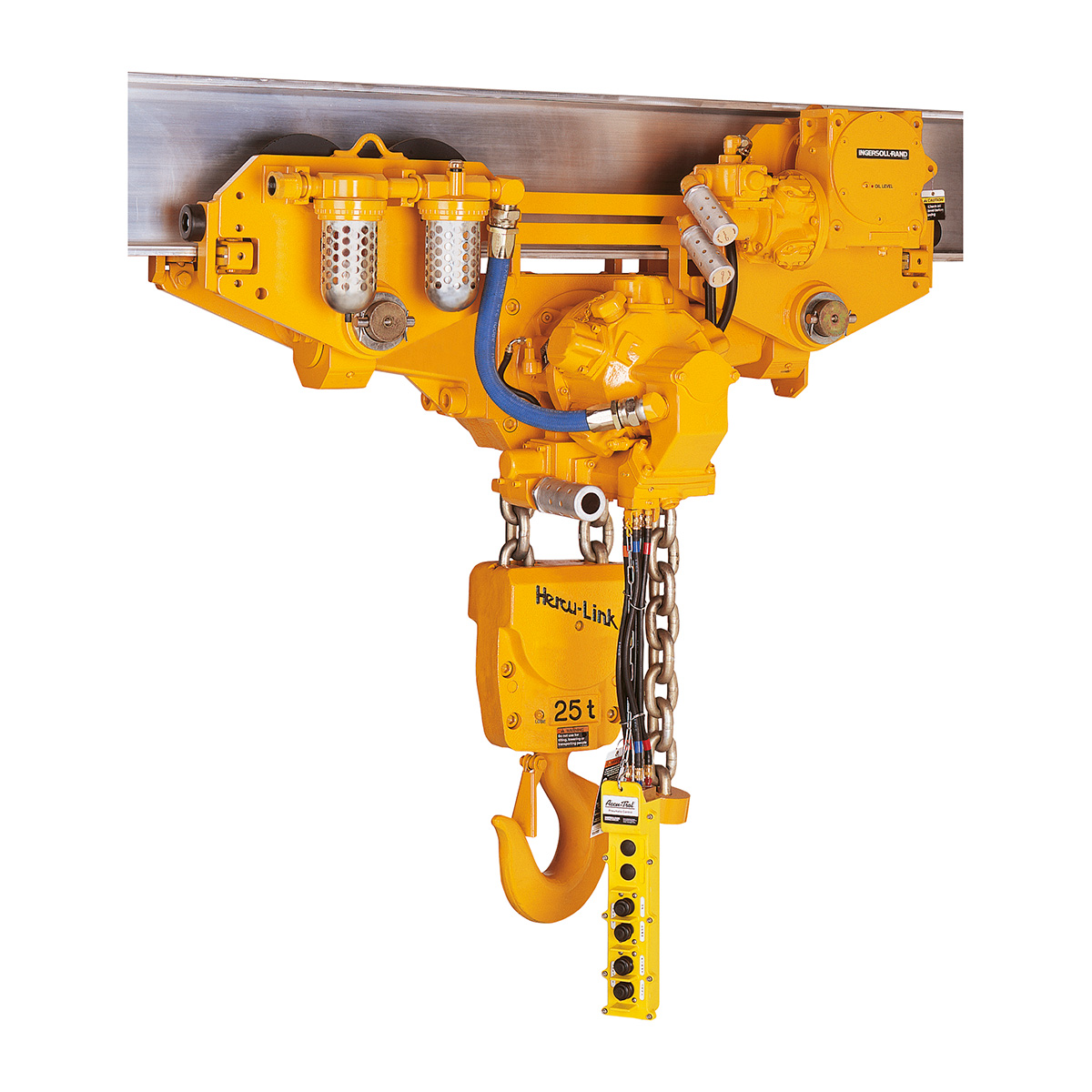 - Ganchos de aleación de acero con pestillos de seguridad y cojinetes de empuje de rodillos para un giro suave bajo carga